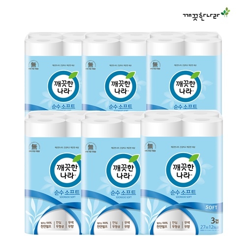 초특가[깨끗한나라] 3겹 순수 소프트 27m 12롤 x 6팩